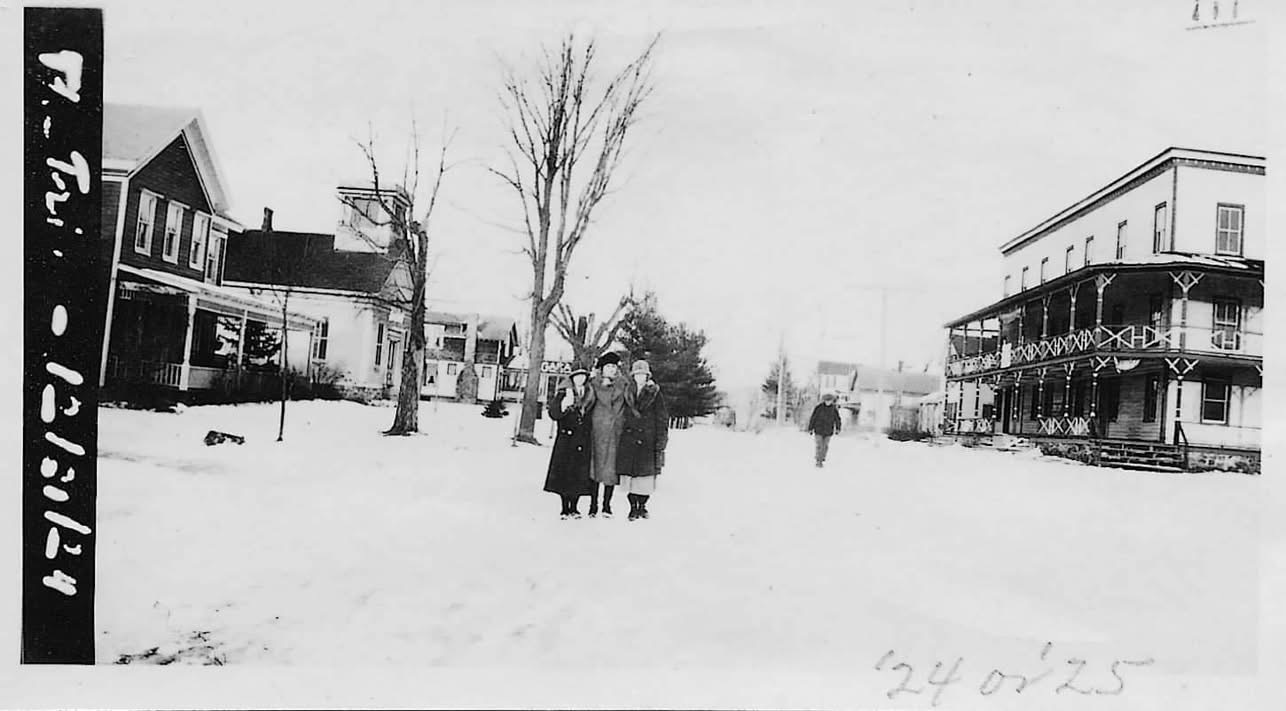 1924-1925 - A beautiful winter's day in Wells. Pictured is the Cochrane Hotel (1886-1929). The Hamilton County Bank was built on the property in 1929.