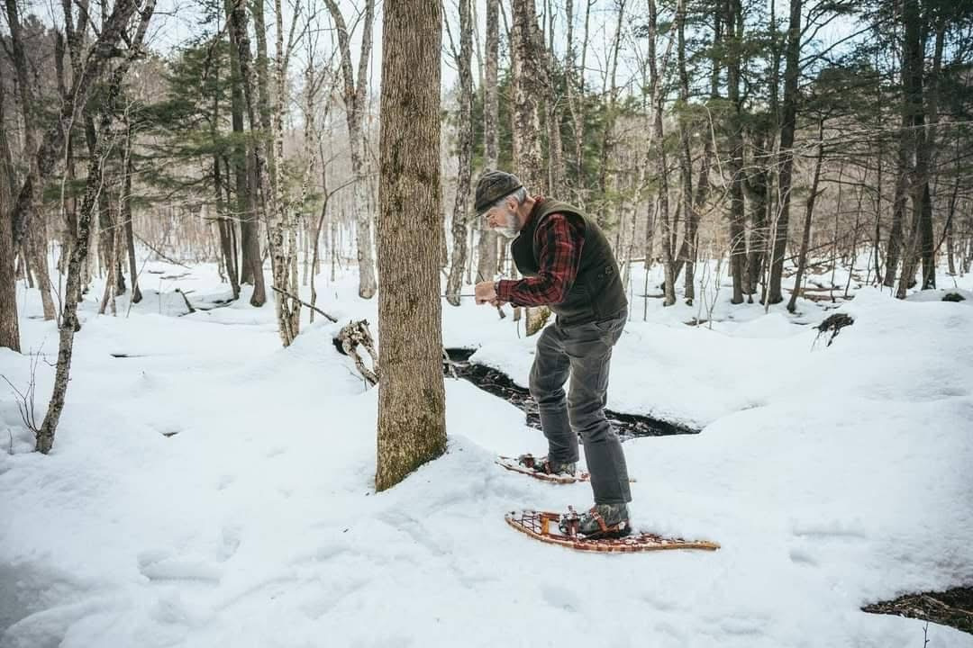 Undated - Jim Abbott uses an increment borer to take samples of the rings of a black ash tree for weaver strips used to make pack baskets.