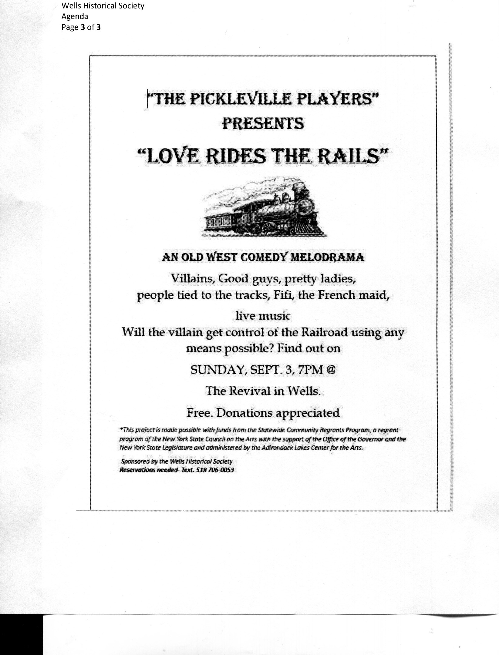 The Wells Historical Society's first co-sponsored event with The Revival, this production was an Old West comedy melodrama that featured live piano music.