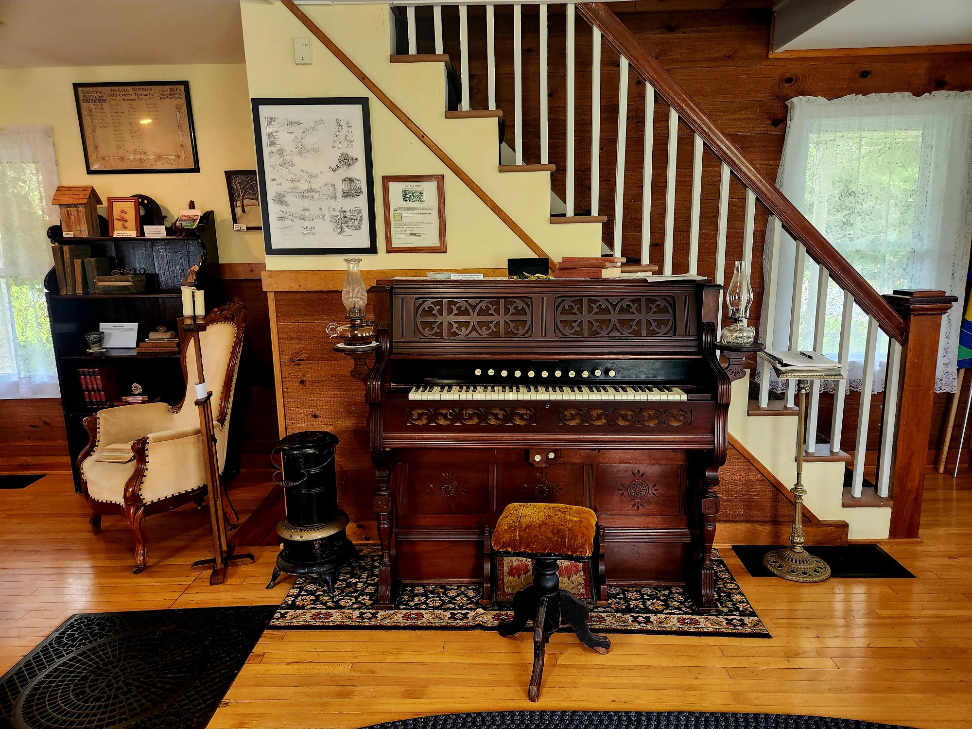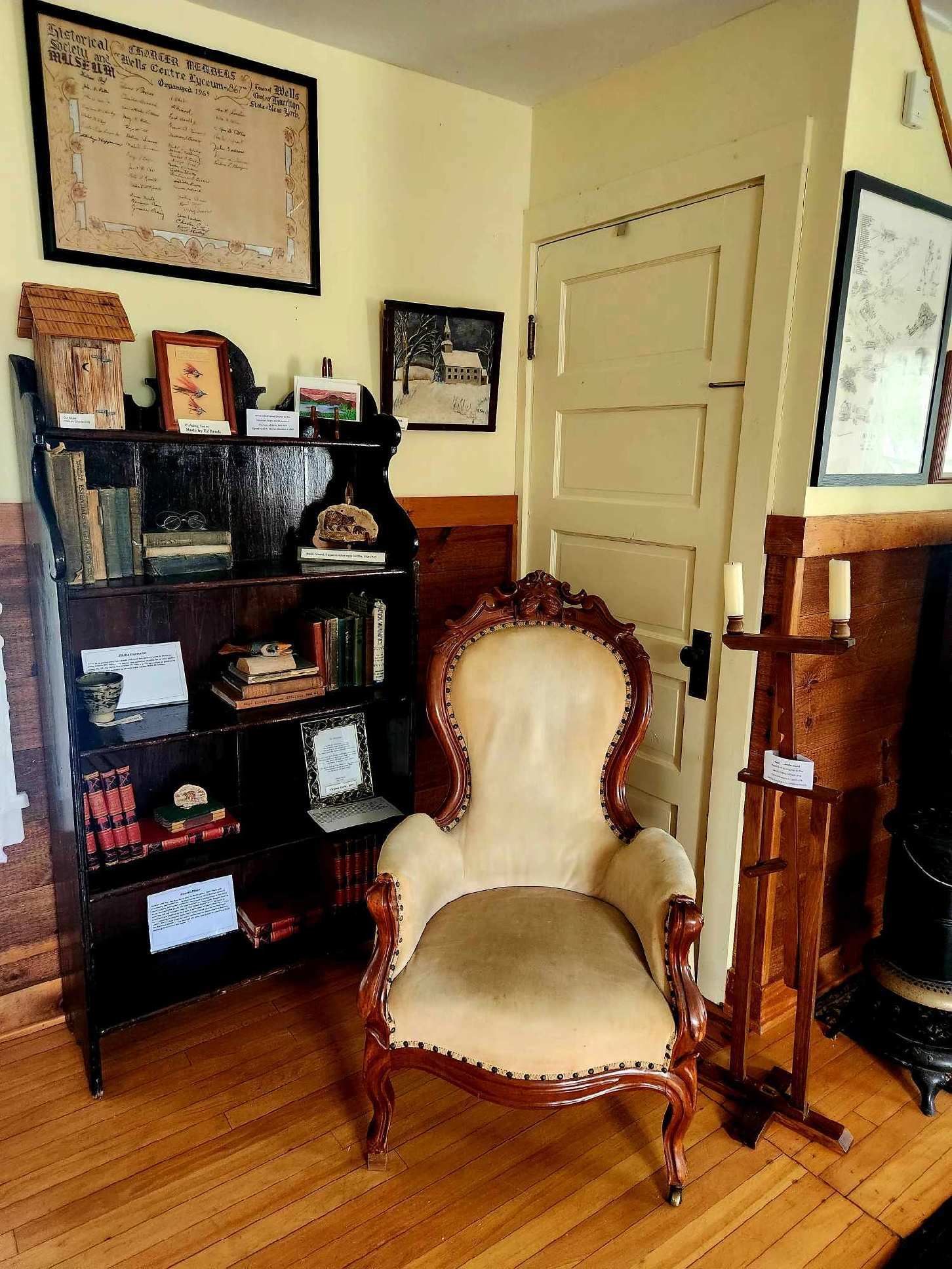 Last autumn and winter, James Schmieder and Glen Unterborn of the Wells Historical Society improved and updated the lighting in several areas of the Wells Historical Society Museum. They installed H series tracks and accessories in the kitchen, main first floor, school room, bedroom, and large display area on the second floor. The project was funded by the Statewide Community Program—a regrant initiative supported by the New York State Council on the Arts, the Office of the Governor, and the New York State Legislature, with administration by the Adirondack Lakes Center for the Arts.
